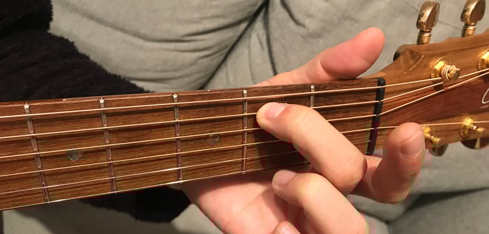 Aadd9の3弦2フレットの薬指を離して同じ薬指で2弦2フレットに変えます!