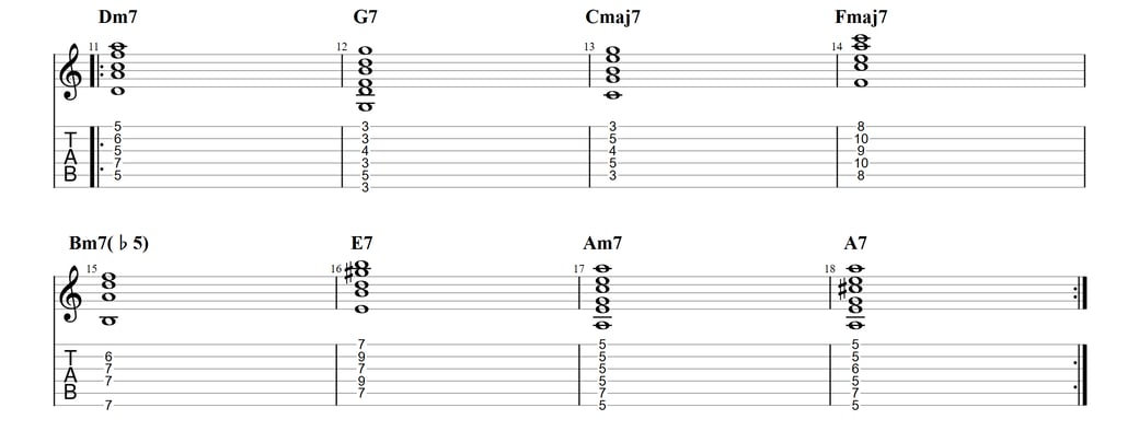 4つ覚えたら、このジャズコード進行を弾いてみよう