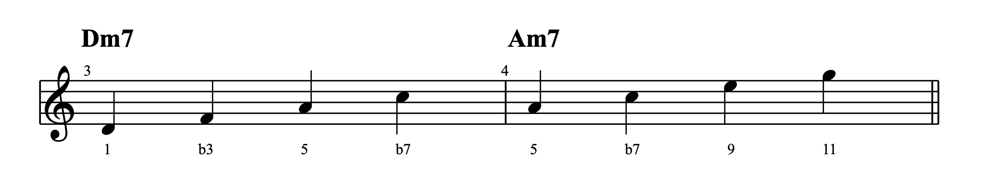 Dmi7のときは5度上のAmi7のコードトーンを使用したソロアイデアについて解説していきます