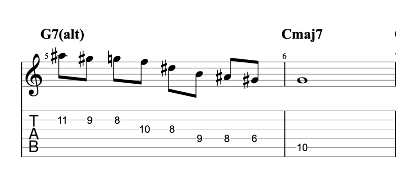 上記はEX-1のポジションを使用したオルタードを使ったフレーズです!