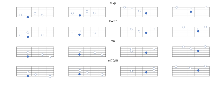 Maj7,dom7,mi7,mi7(b5)の4種類のコードの