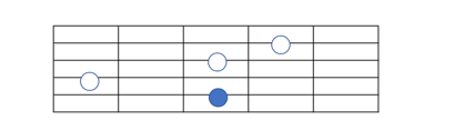 元々の2弦の音は♭3ですが,4弦にもあるので