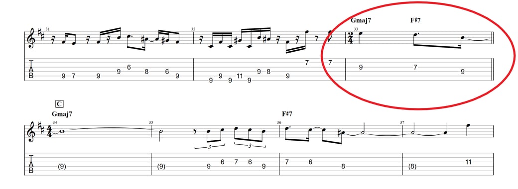 バンドアンサンブルや特にギターデュオでここでリズムがずれたリ見失う方が多くみられます
